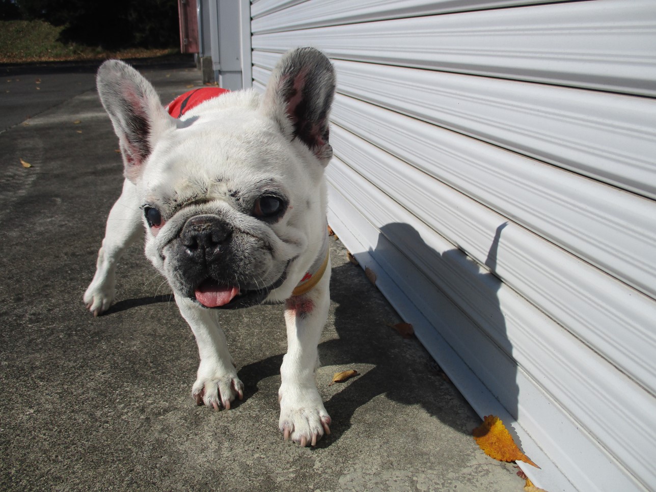 本日は、朝天候に恵まれず残念な雨でしたが、午後には太陽が顔を出してくれました。皆様はいかがお過ごしでしょうか??ぶんぶんは、看板娘見習いの「さくちゃん」と店舗周辺をパトロール。壁が好きなようです・・・。もう少し練習しましょうかね。おやつの差し入れには、警察犬真っ青な反応でございました。ご馳走様です!