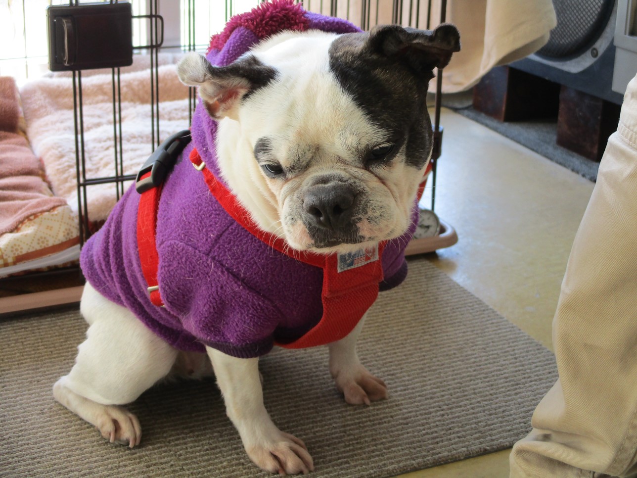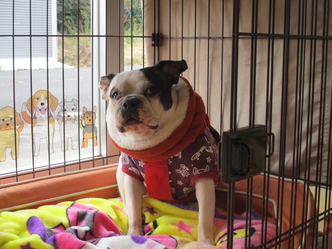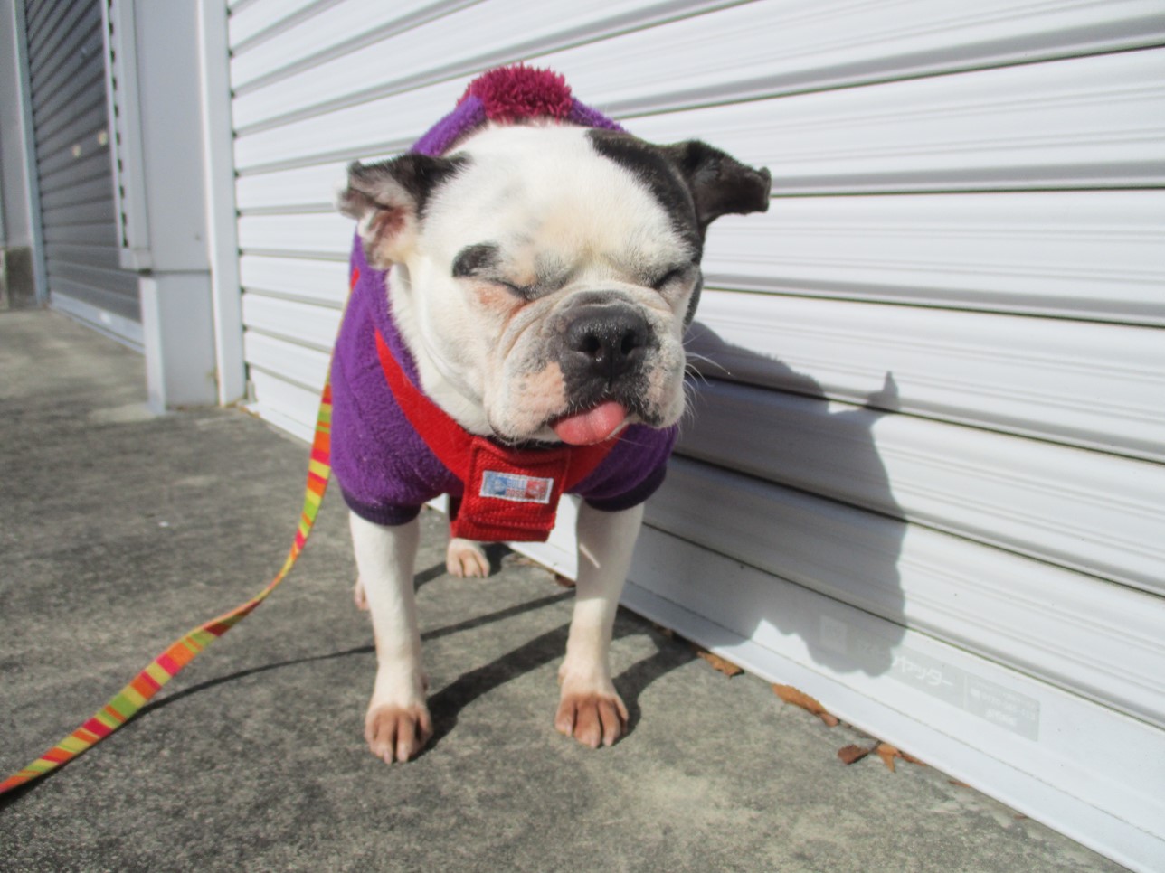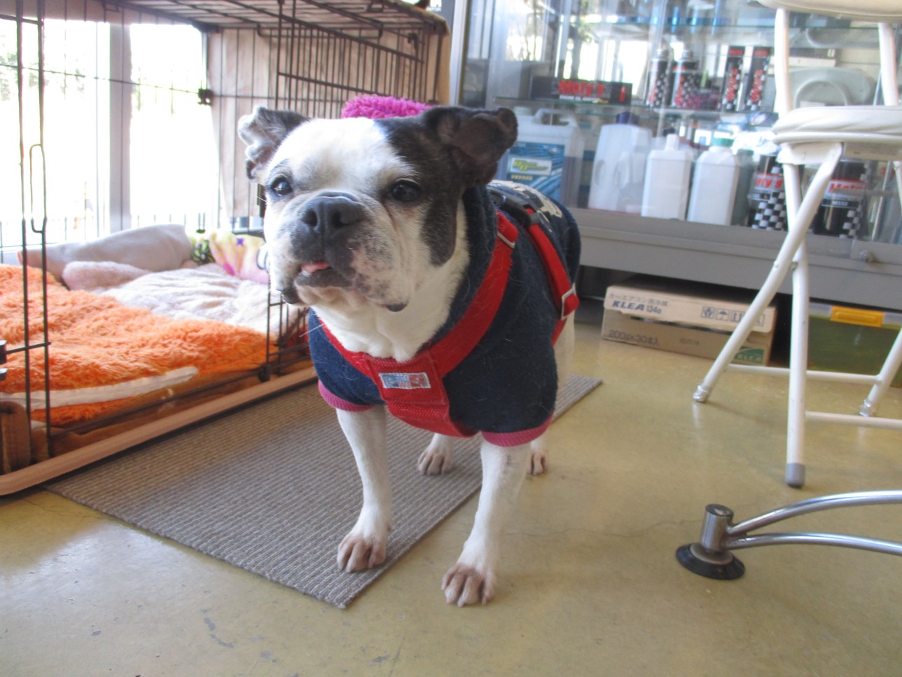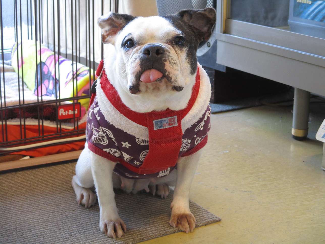 ぐっと寒くなってきましたが、皆様いかがお過ごしでしょうか??続・看板娘「さくちゃん」はすっかり冬仕様になっております。何故ならものすご~く寒がりさん。洋服を着ずに過ごしていたのが噓のようです。朝ご飯も食べずにヒーターに張り付いて何とかご飯を食べて頂く状態です。昼間はモリモリなので昼食付きで出勤です。