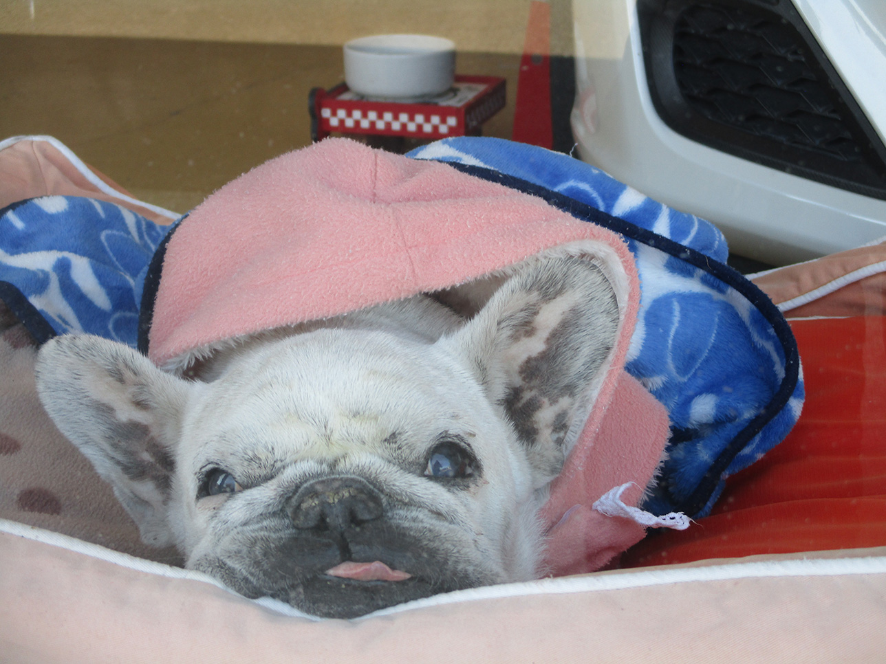紅葉が綺麗な季節になってきましたね。皆様いかがお過ごしでしょうか??看板娘「はな」もすっかり動かなくなりました。でもとても元気です。良く眠ってくれているので助かりますが、散歩もショートカット。何だか少しだけ寂しいです・・・しかし合間合間のちゅ~るおねだりはすごいです。食欲があるのは何より。「はな」の冬支度だけはバッチリ!皆様も愛車の冬支度はいかがですか??何かございましたらご連絡下さい。