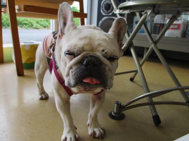 暑い日が続きますが、ここ2~3日の涼しい日がとても嬉しいぶんぶんチームです。看板娘「はな」も頑張って午前中はパトロール。午後はこんなお顔で眠気と戦っておりますが、接客は忘れませんよ。お盆も通常通りの営業です。皆様の御来店お待ちしております。