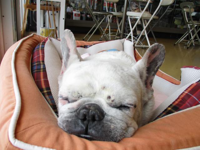 長雨が続き気持ちもすっきりしない今日この頃ですが皆様いかがお過ごしでしょうか?台風も近づき日曜日の天候が心配になったので期日前選挙に行ったら今までになく混雑していてびっくり!何事も無く台風は去って頂きたいですね。そんな天候の中作業以外にも沢山のお客様が見えて下さいました。ありがとうございます。・・・寝てばかりの看板娘「はな」でございます。