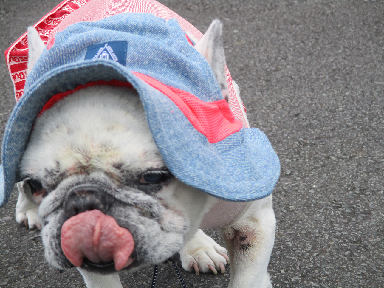 今ワンコの帽子が普通に販売されていてチョットびっくりしました。ごろごろが癖の「はな」の為に1つ購入してみました。頭のところが摺れるというか保護ですね。(太陽からも保護で白内障予防です。)でもとっても可愛いいの。・・・byバカ飼い主