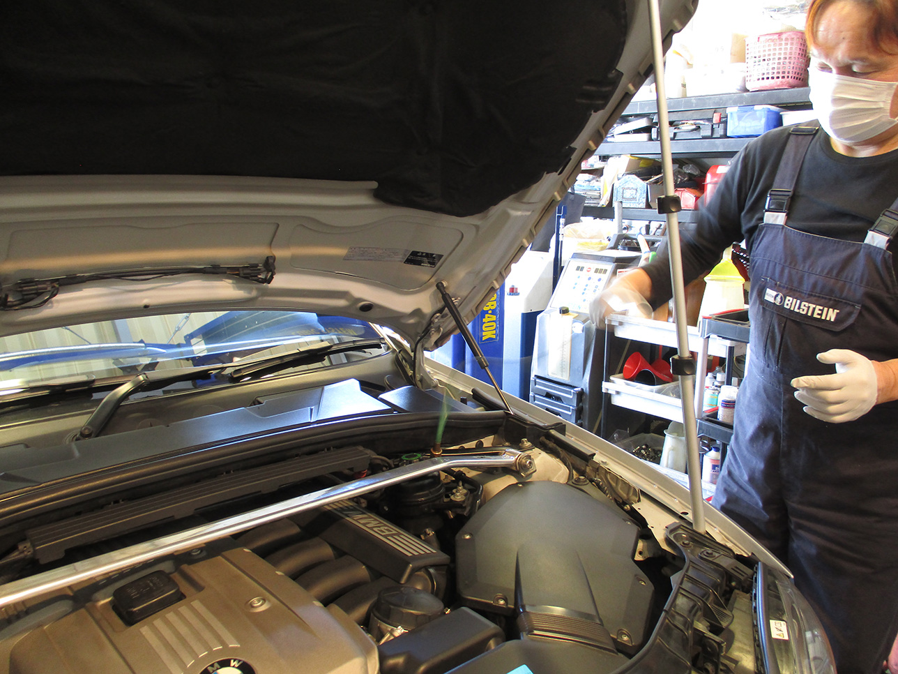 1.BMWのエンジンオイル交換&NUTEC(NC-200)エアコンコンプブースト&JET(ラジエーター&コンデンサー洗浄)施工・・・いつもありがとうございます。
