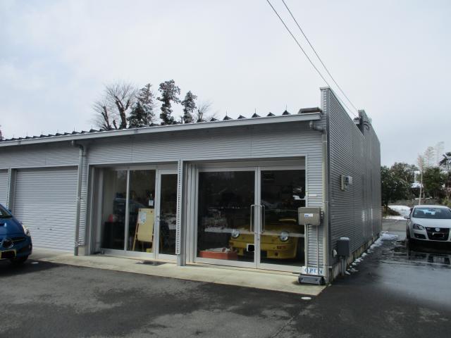 *植木に囲まれた貸しガレージの一角になりますので、解りにくいときは遠慮なく御問い合わせください。お待ちしております。(JA高根の道向)・・・少し田舎の静かな環境になりましたが、前店舗より駐車場が広くなりました。ピットは裏側になります。
